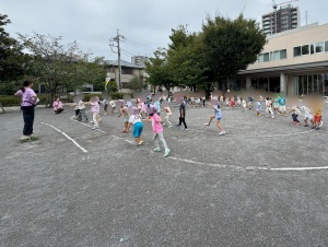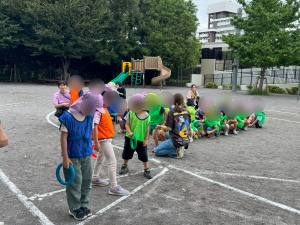 4歳児は初の参加となる、4,5歳児の「グループ対抗リレー」でも、走る順番や作戦を子どもたちで話し合う姿が見られます。子どもが主体となり進めることで仲間と一つのことに取り組むの思いが一層強くなっているようです。