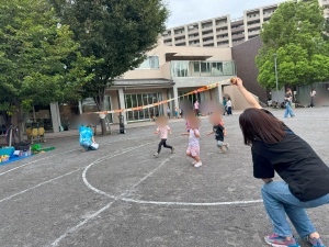 来月、「ひだまりんぴっく」と題した運動会を開催する予定です。当日に向けて会場となる公園で、ひだまりんぴっく”ごっこ”をして遊び、本番の雰囲気を楽しみました。