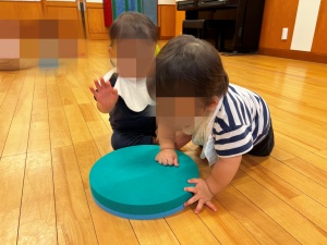 他にも、タンバリンや鈴、ミュージックパットなど、音が鳴るものを身近に置き触れることで、動きと音が連動していると分かっていきます。