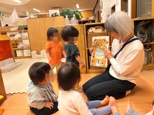 看護師より共有スペースにて「歯磨き指導」も行なっています。「ワーニー、はみがきできるかな?」の紙芝居を見てた後は、正しい歯ブラシの持ち方と磨き方を教えてもらいました。