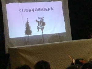 影絵シアターで、幻想的な絵に釘付けです。次は何が出てくるかとワクワクしながら、物語を聴いています。