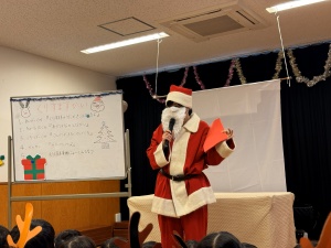 栄養士扮するサンタさんが登場、クリスマスメニューの発表に、今年も期待が高まります。