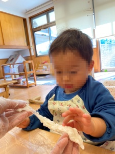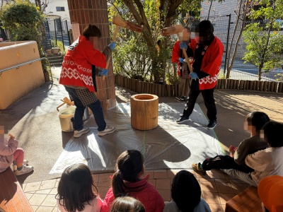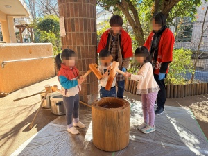 地域のお餅つきに参加したご家庭もあるかもしれませんが、近頃は年中行事の経験が少なくなってきているので、園では季節の行事や行事食に触れ、日本の四季や伝統行事を感じられるようにしていきたいと思います。