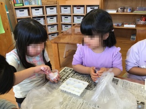 最近の関心はバスボム作りです。事務所にアロマオイルがあると伺い、園長先生に使わせてもらいたいとお願いに行きました。