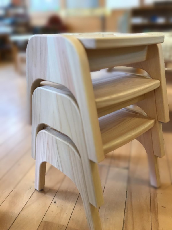 新しい椅子は多摩産ヒノキを使用しています。強度と耐久性がありつつ軽く、子どもたちの手になじみ、よい香りがします。